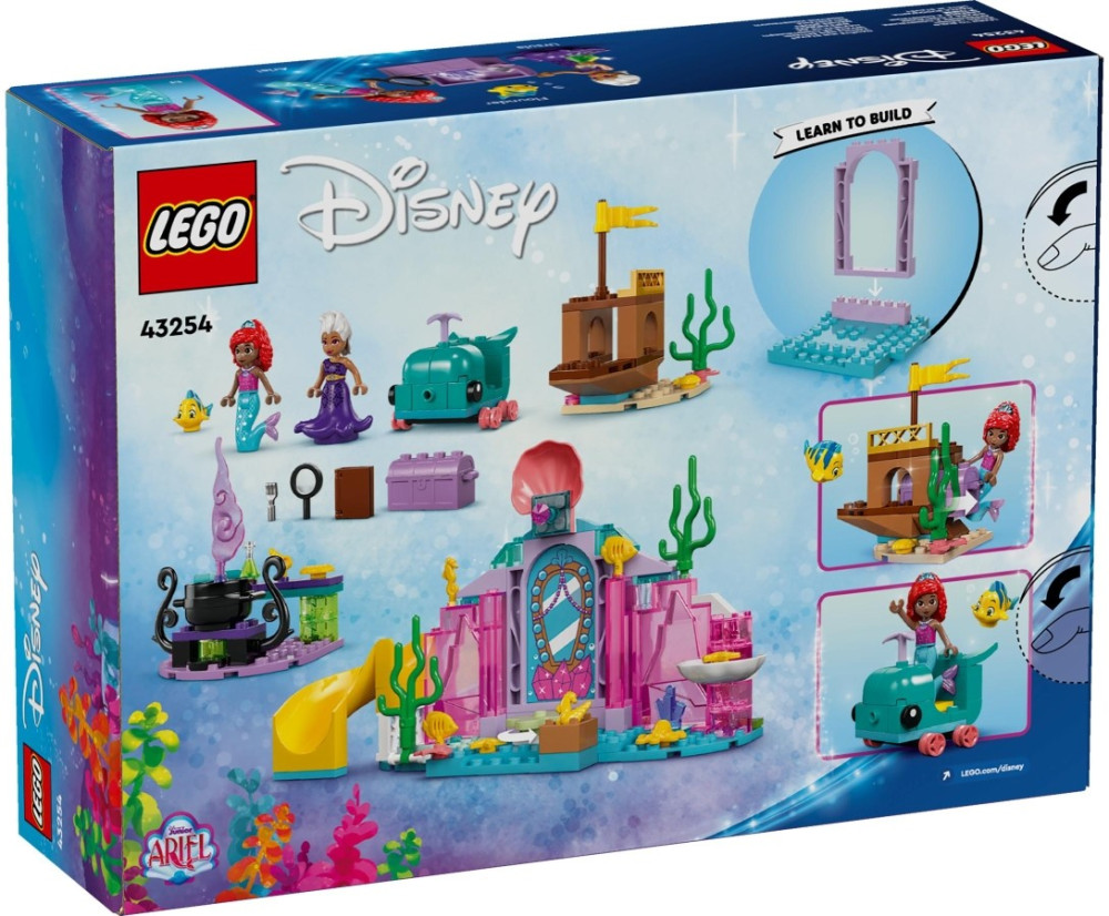 Nyűgözd le a Disney Junior Ariel című sorozatának rajongóit a kristálybarlanggal, 2 LEGO® Disney minibaba-figurával és a LEGO Disney halfigurával!
