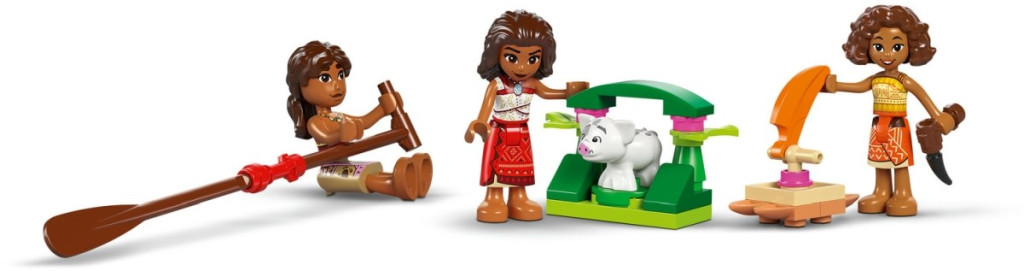 • Disney játékkészlet – Kéttörzsű kenut tartalmazó építőjáték, amelynek mintást textilvitorlája van, és tartozik hozzá egy kötél lei hulu is, hogy meg tudd határozni a szél irányát, a készlet része még egy apró ház Pua, a malac számára, és egy kunyhó Vaianának