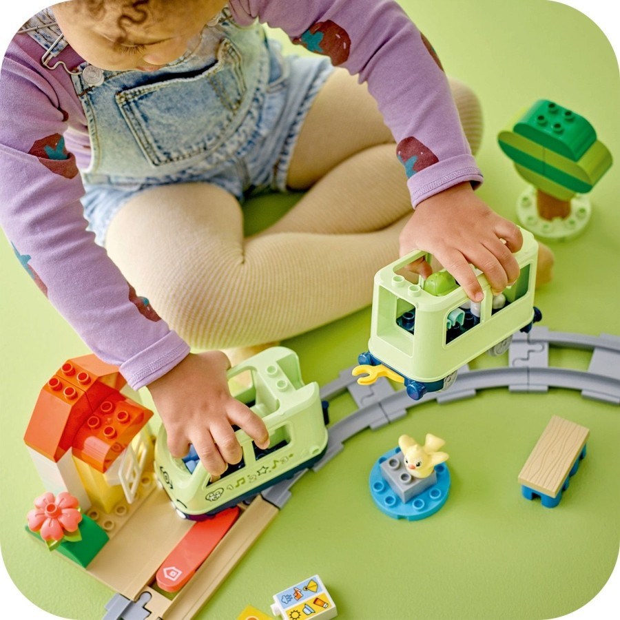 • Interaktív vonatos készlet az órákon át tartó, kreatív játékért – A 2+ éves kisgyermekek egy tanulásra ösztönző utazásban vehetnek részt a LEGO® DUPLO® Interaktív kalandvonat, óvodásoknak készült játékkal