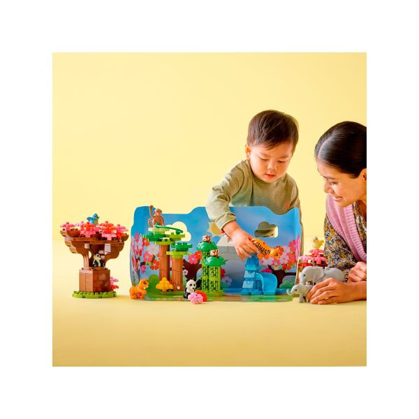 – A LEGO® DUPLO® Ázsia vadállatai (10974) szett Ázsia természetes élőhelyeinek részletesen kidolgozott változata, ahol valósághű hangokkal kiegészített, őshonos állatokat, növényeket és fákat találtok