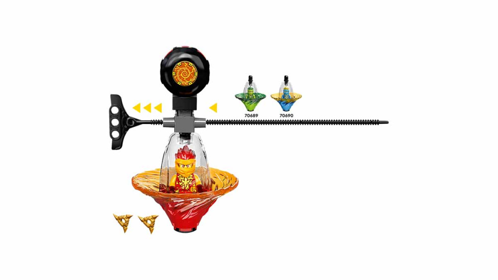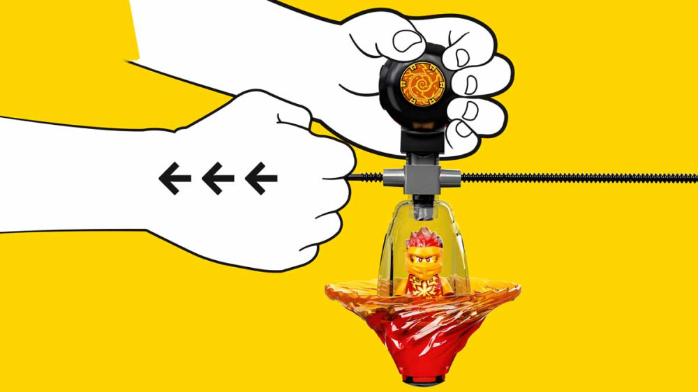A gyerekek örömmel fogják Kai-t a pörgettyű belsejébe helyezni, meghúzni a kioldózsinórt és megnézni, ahogy szélsebesen pörög a sík felületeken vagy a magasegyensúlytornyon. Az új, 2022 márciusában megjelenő Kai minifigura egy exkluzív, eddig még sosem látott elemi erő külsővel van ellátva.