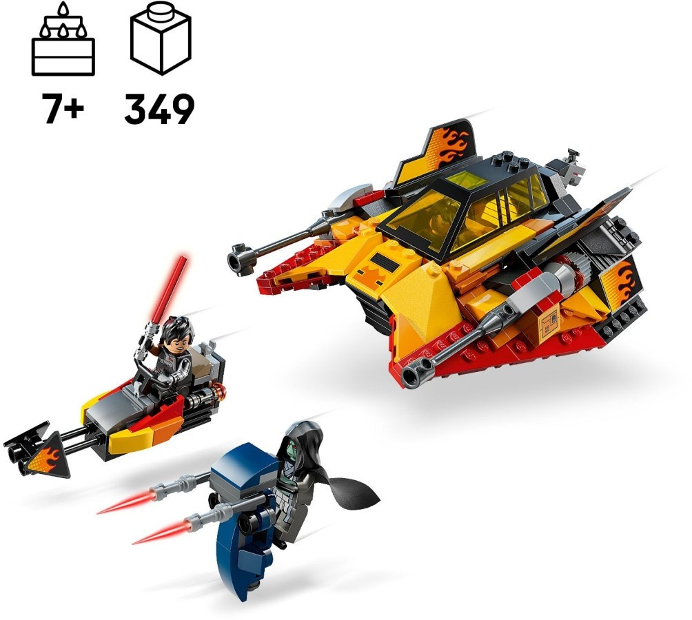 • 2 LEGO® Star Wars™ jármű egyben – A Force Burner hósiklót lángmatricák díszítik, dupla pilótafülkéje felnyitható (ahol egy rejtett, kioldható speeder bike-ot találsz), a hátulján pedig korongvetők vannak