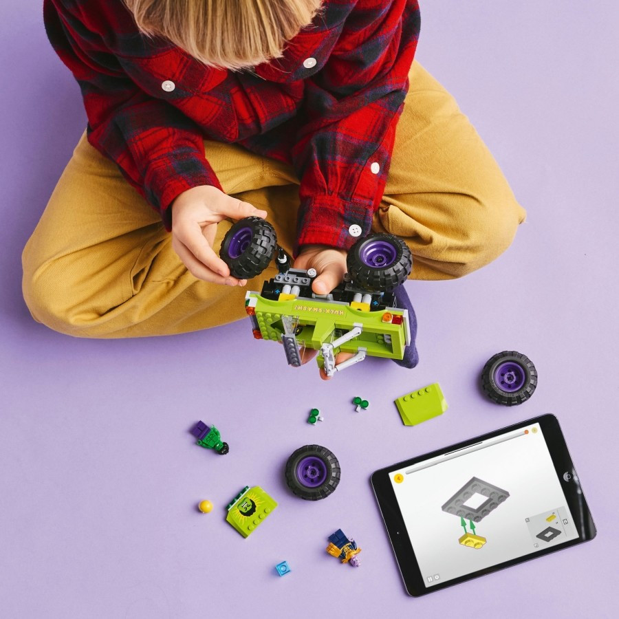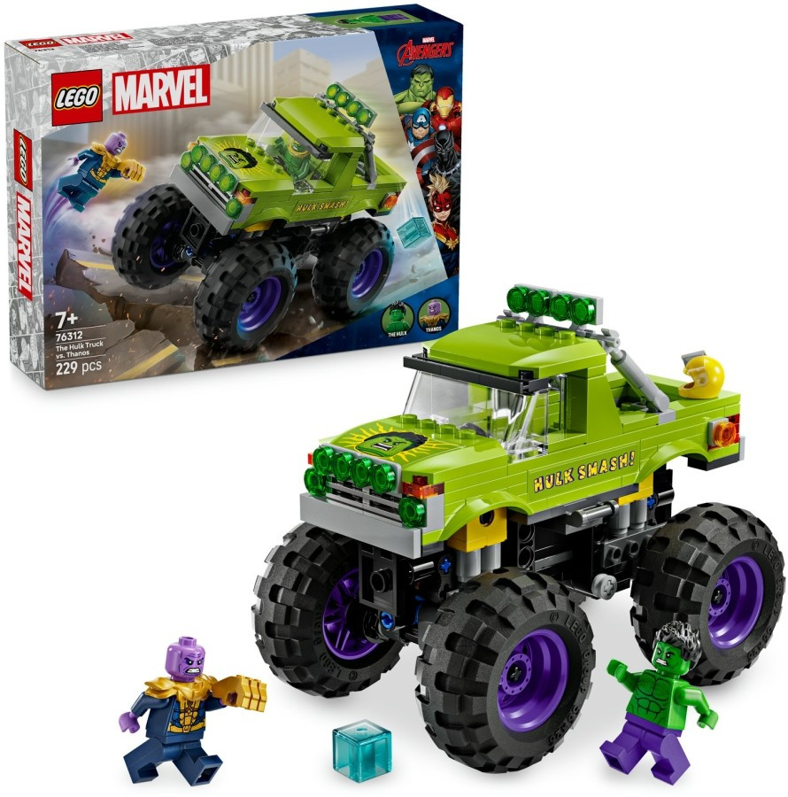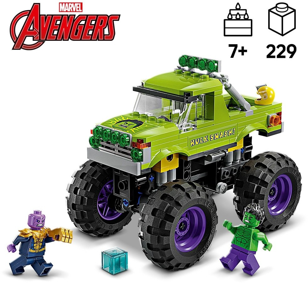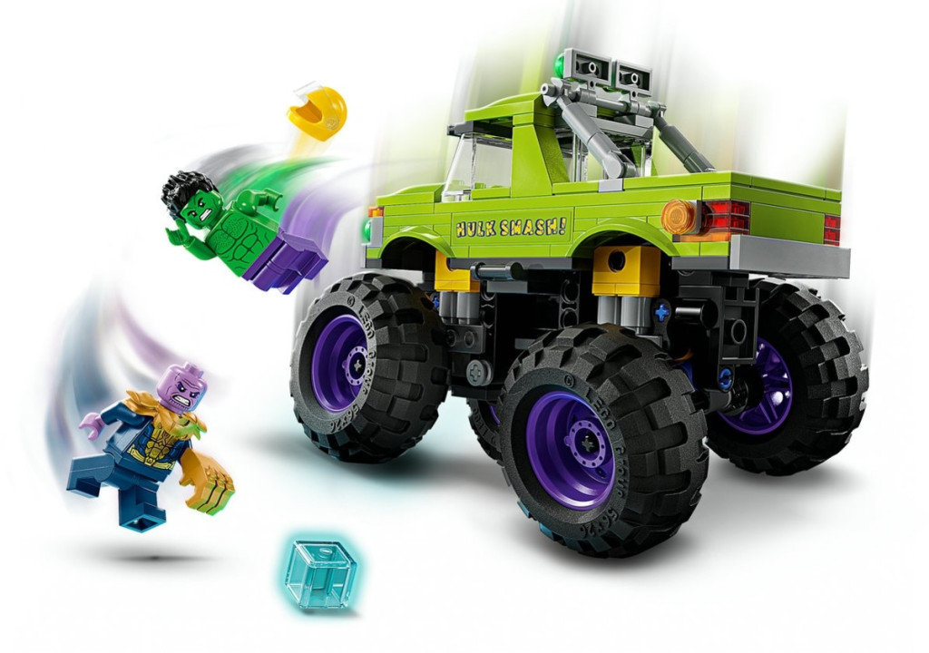 A megépíthető LEGO® Marvel Hulk óriási terepjárója vs. Thanos játék teherautó a lengéscsillapítóival egy vagány ajándék lesz fiúk és lányok számára.