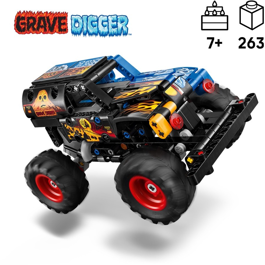 Indítsd be a gyerekek képzelőerejét, miközben fantasztikus mutatványokat játszanak el a LEGO® Technic Monster Jam™ Grave Digger™ tűz és jég visszahúzós játék autóval!
