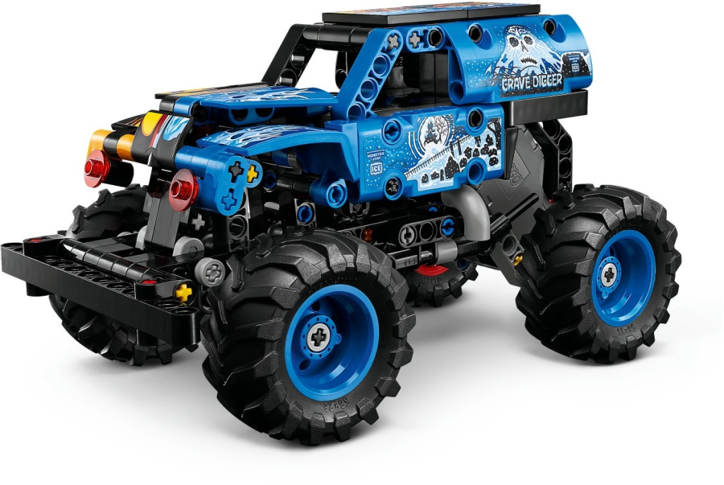 • MONSTER JAM™ GRAVE DIGGER™ ÉPÍTŐJÁTÉK – Vágj bele a mókába a 7 éves vagy nagyobb gyerekeknek, fiúknak és lányoknak készült LEGO® Technic Monster Jam Grave Digger tűz és jég (42219) visszahúzós autóval!
