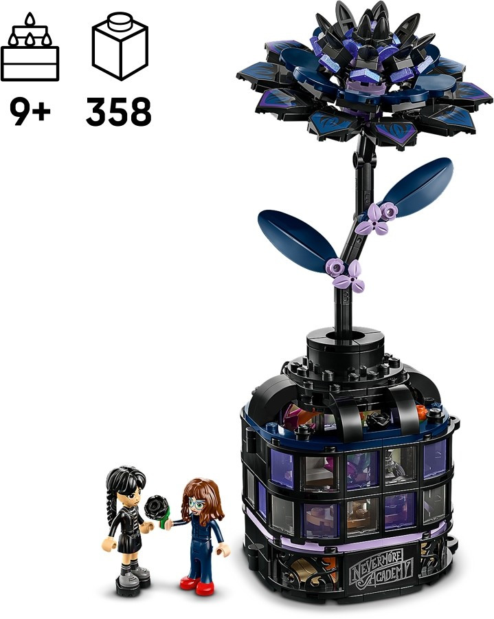 • Ajándékozz Wednesday Addams játékot halloweenre! – Nyűgözd le a formatervezés vagy a LEGO® építés 9 éves vagy nagyobb rajongóit a Fekete dália szettel, ami vázát, virágot és sok mást tartalmaz