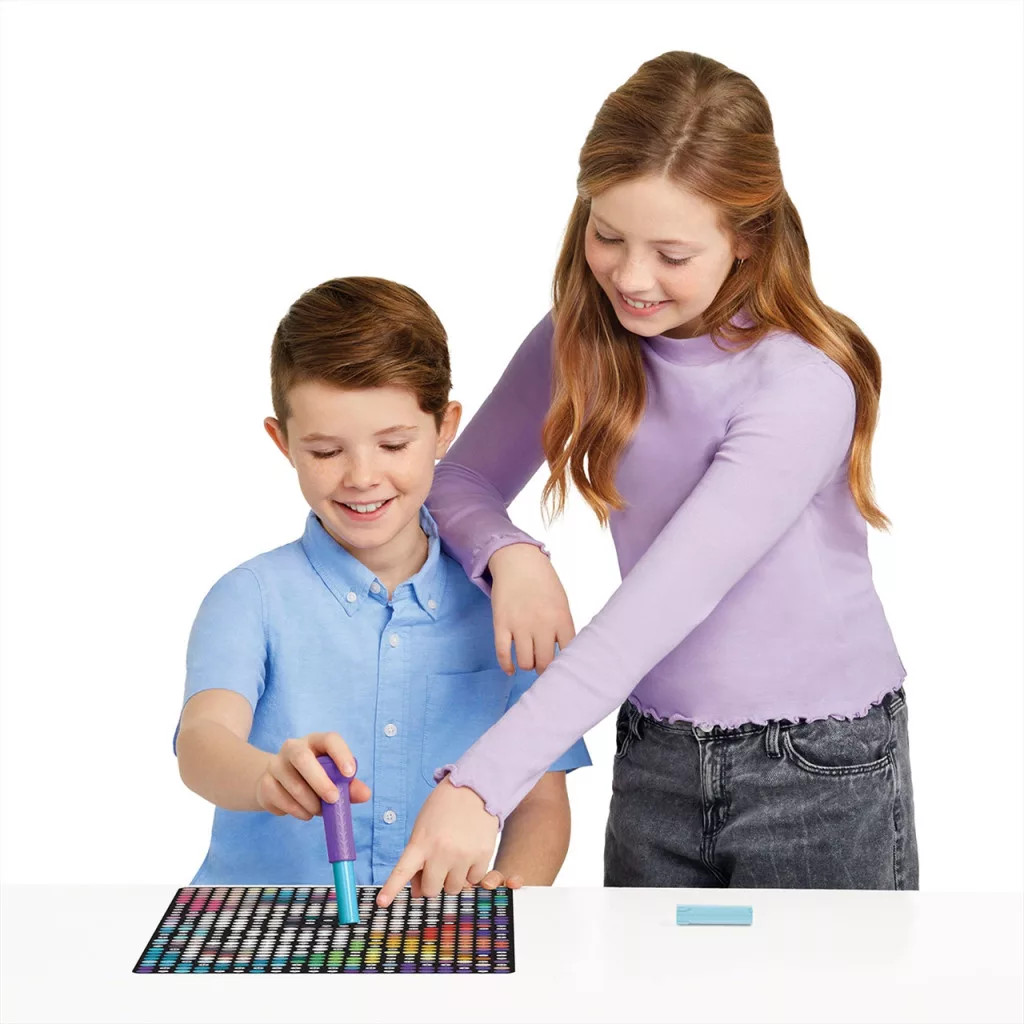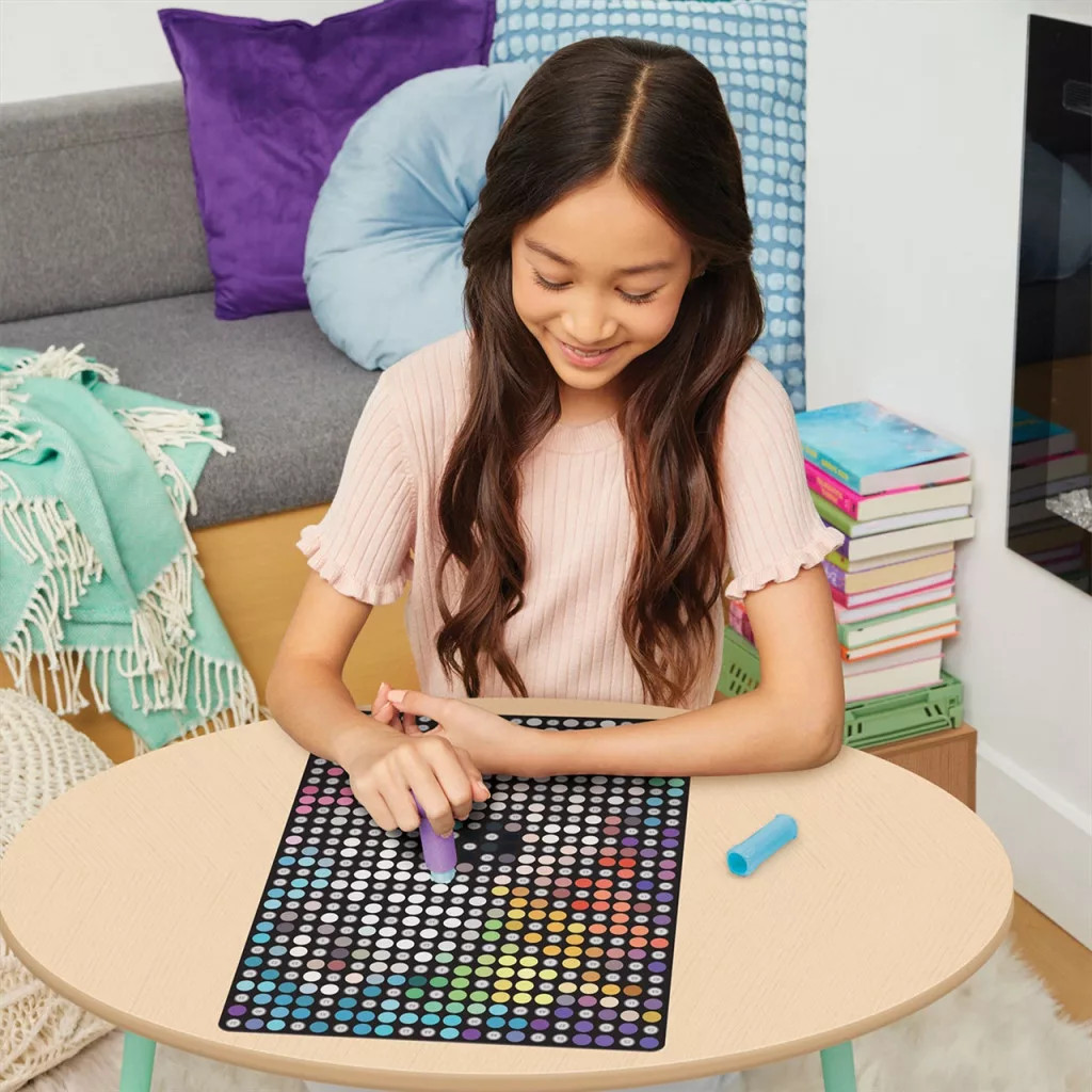 Pontokból képet? Ismerd meg a dot art készítést, és készíts posztert rendi megjelenéssel! Vedd a kezedbe a bélyegző pálcát, nézd meg a következő a papírpötty számát, és keresd meg a helyét a poszteren. Igazítsd a bélyegzőt, majd nyomd a megfelelő helyre. Folytasd az alkotást, és nemsokára egy színes és vidám kép áll össze előtted. Ezzel a szettel egy színpompás unikornist alkothatsz.