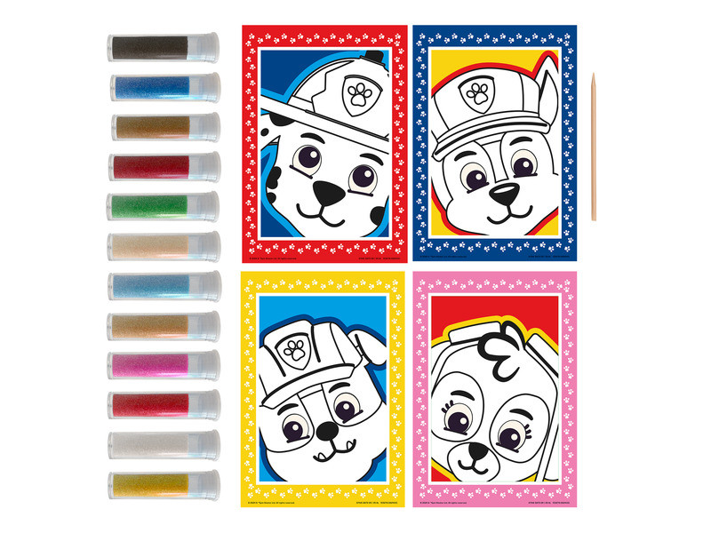 • Minden a csomagban: A szett mindent tartalmaz, amire szükséged van: 4 db előre nyomtatott, öntapadós Mancs Őrjárat képet, 12 különböző színű homokot, és egy fa pálcikát a könnyű használathoz.