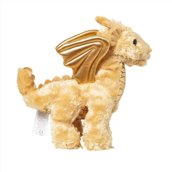 Pihe puha plüss sárkány, szárnyai és mellkasa aranyszínben fénylik mintha most lépett volna elő valamelyik meséből.