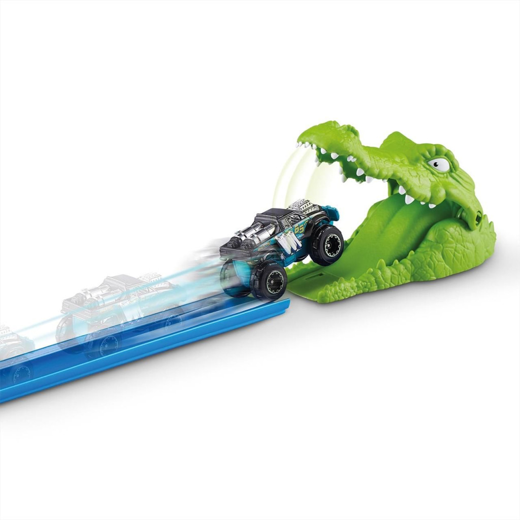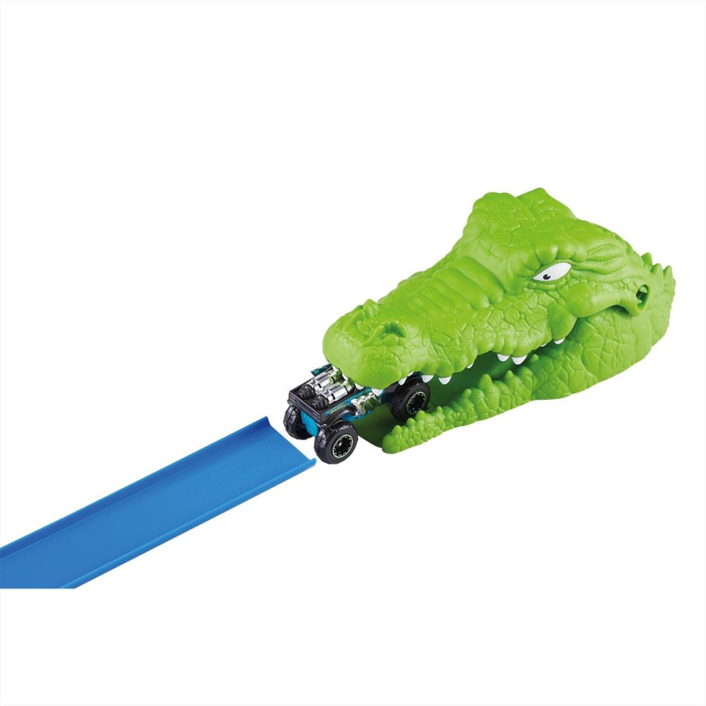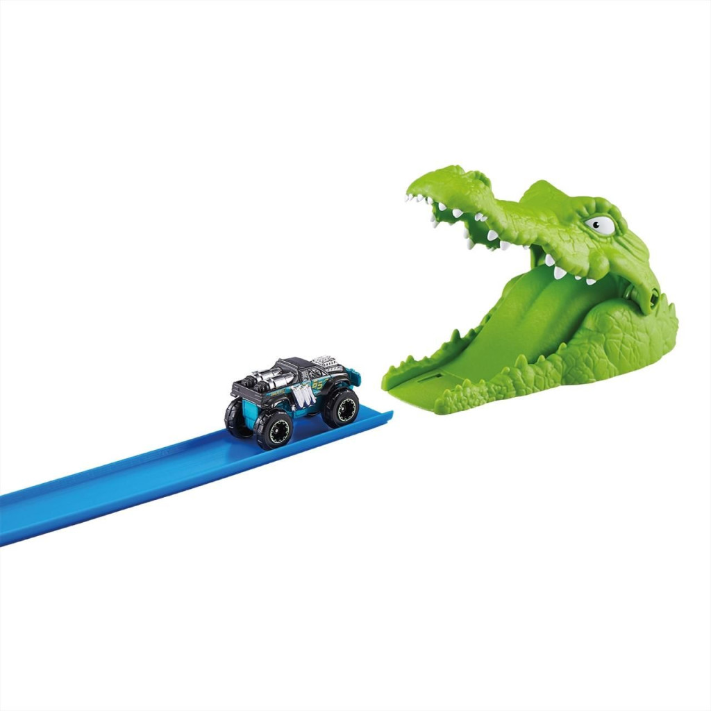 Lépj a gázra, mert egy flottányi Metal Machines kisautó várja, hogy begyűjtsd őket, és teszteld őket a legőrültebb pályákon! A Metal Machines korokodil támadás játékszett 1:64-es méretarányú monster járgányokkal kompatibilis. Vajon elég gyorsak, hogy szembenézzenek a krokodil harapásával? A szettben egy vagány kisautót találsz, de más kedvencedet is a kilövőbe helyezheted. Indítsd a katapultot, hogy végrehajtsd a mutatványt!