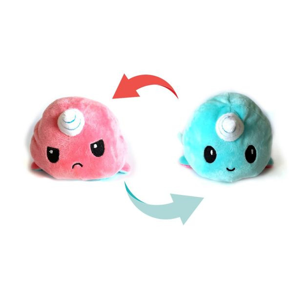 Ez a cuki narvál nem csupán egy ölelnivaló plüss pajtás! Az egyedülálló, kifordítható játék mindkét oldala más színű, s míg az egyik oldalon mosolyog, a másik oldalon mérges. Tedd ki az asztalodra vagy a könyvespolcodra, fordítsd a megfelelő oldalára, s mutasd meg, milyen a hangulatod! Tökéletes partner, ha szomorú vagy: ha szeretnéd, együtt érez veled, ha pedig szeretnéd, felvidít és megnevettet! Gyerekek számára is kiváló választás, sőt, alvótársként vagy stresszoldó játékként is használható.