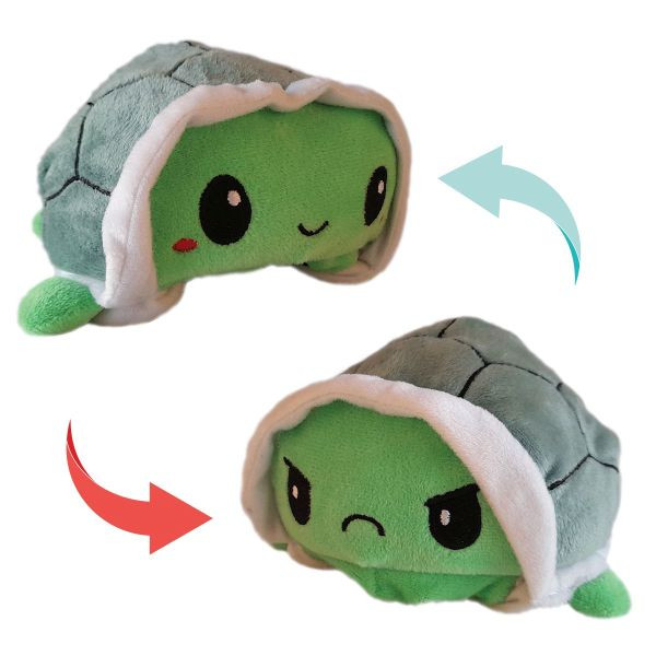 Ez a cuki teknős nem csupán egy ölelnivaló plüss pajtás! Az egyedülálló, kifordítható játék mindkét oldala más, míg az egyik oldalon mosolyog, a másik oldalon mérges arckifejezése van. Tedd ki az asztalodra vagy a könyvespolcodra, fordítsd a megfelelő oldalára, s mutasd meg, milyen a hangulatod! Tökéletes partner, ha szomorú vagy: ha szeretnéd, együtt érez veled, ha pedig szeretnéd, felvidít és megnevettet! Gyerekek számára is kiváló választás, sőt, alvótársként vagy stresszoldó játékként is használható.