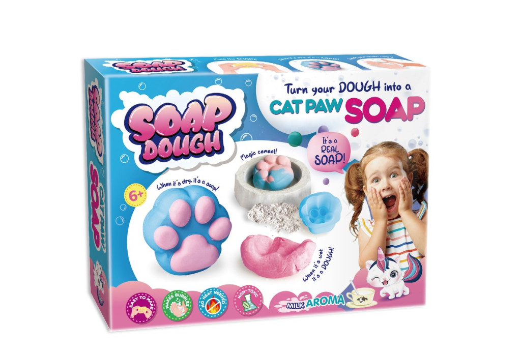 Ez a különleges anyag egyszerre szappan és gyurma, így a kreativitásnak csak a képzelet szab határt. Áztasd vízbe, és már fújjhatod is a puha, tejillatú buborékokat. Ha megszárad, formázd a mellékelt forma segítségével élethű cica mancsokká!