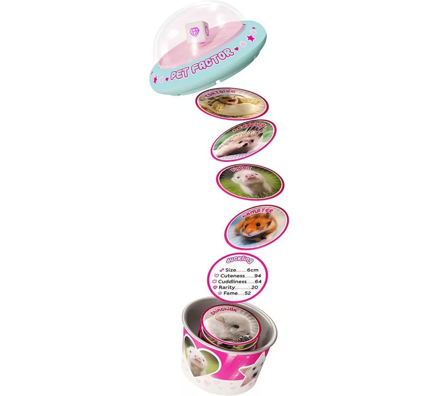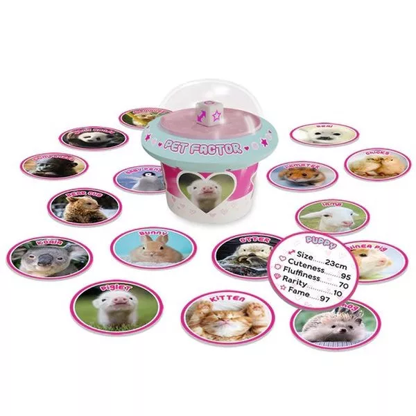 A kártyákon az állatkák az alábbi kategóriák alapján vannak pontozva: méret, cukiság, bújóság, ismertség és ritkaság. Nyomjátok meg a doboz tetejét, hogy a dobókocka megpördüljön. A kocka mutatja meg, milyen kategóriában kell megtalálni a legmagasabb pontszámú állatot.
