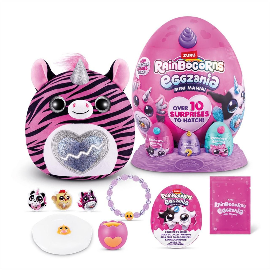 Micsoda „meglepetés”! A Rainbocorns Eggzania mini tojások garantáltan jobb kedvre derítenek. Ha felnyitod őket, először egy nagyon cuki plüss barát bújik ki belőle, de hékás, hiszen nincs egyedül! Nézd meg alaposabban a tok tartalmát, és vedd szemügyre a kis tojásokat is! Mindegyik csomagban 10 meglepetés kiegészítőt is találsz. Az első sorozatban hatféle édes kis szőrmókot fogadhatsz örökbe.