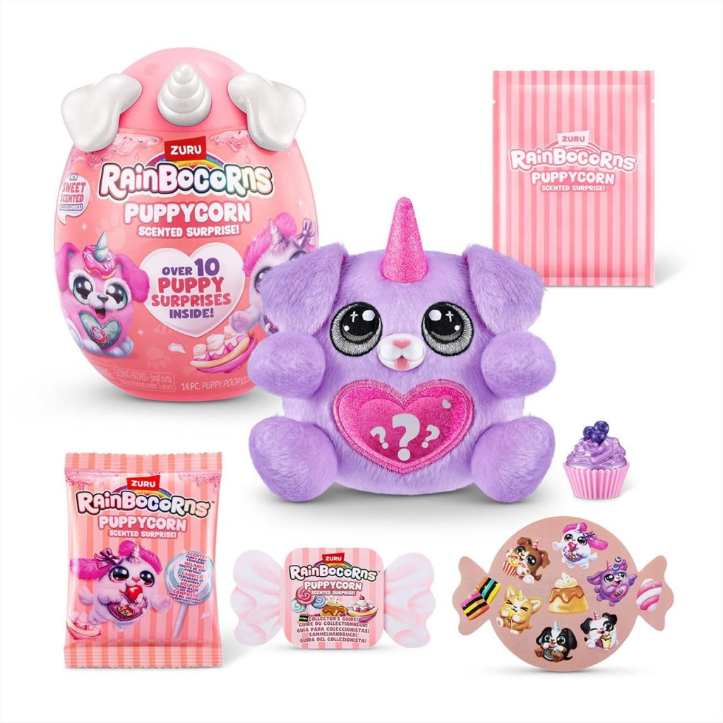 Jó a szimatod? Akkor könnyen rátalálsz az illatos Puppycorns plüss meglepetésekre! Ebben a Rainbocorns sorozatban 7 cuki kutyakornis kölyköt gyűjthetsz össze – mindegyik puha, bolyhos és nagyon squishy. Ráadásul a tojásban 10 meglepetést is találsz, köztük illatos matricákat és izgalmas kutyakaki slime-ot.