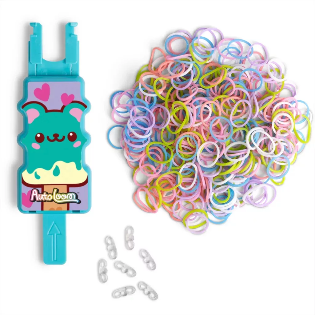 A különleges „Auto Loom” eszköz segítségével a karkötők készítése még egyszerűbb és gyorsabb: csak helyezd fel a gumikat, majd egy mozdulattal „kattints”, és már fonódik is a minta!