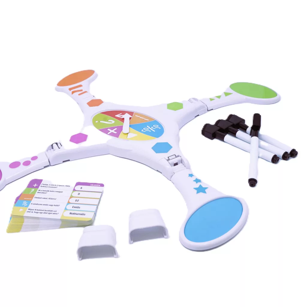 • Minőségi alkatrészek: A letörölhető "lapátok" és filctollak strapabíróak és újra meg újra használhatók. Ez nemcsak környezetbarát megoldás (nincs papírpazarlás), de a játékot rendkívül praktikussá is teszi. Csak előkapjátok, játszotok, letörlitek, és már mehet is vissza a dobozba.