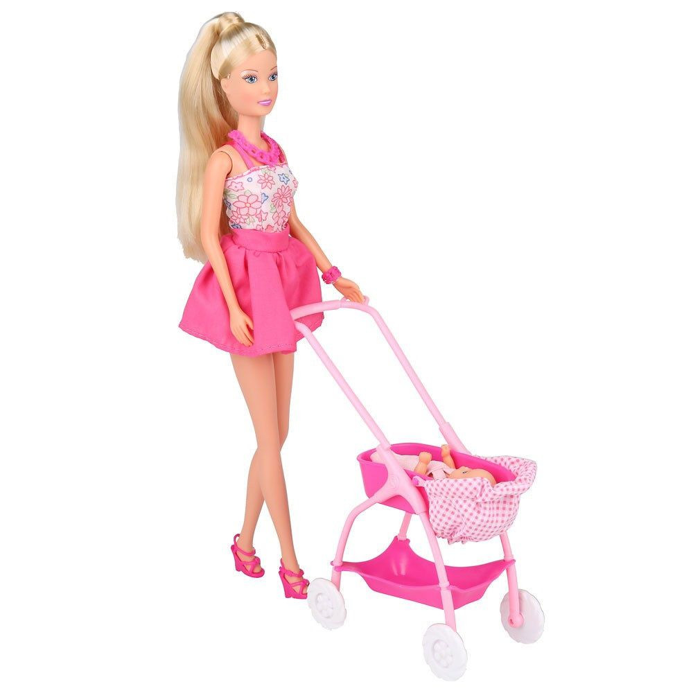 A Steffi Love baba ezúttal babakocsival sétál a parkban, és egy imádnivaló csöpp bébire vigyáz. Bármennyire is remekül bánik a gyerekekkel, szüksége van segítségre, hogy rendben tudja az apróságot. Segíts neki, és sétáljatok együtt. A szettben egy Steffi Love babát, egy bébit és egy babakocsit találsz, valamint minden olyan kiegészítőt, amire a gyerekvigyázás során szükség lehet.