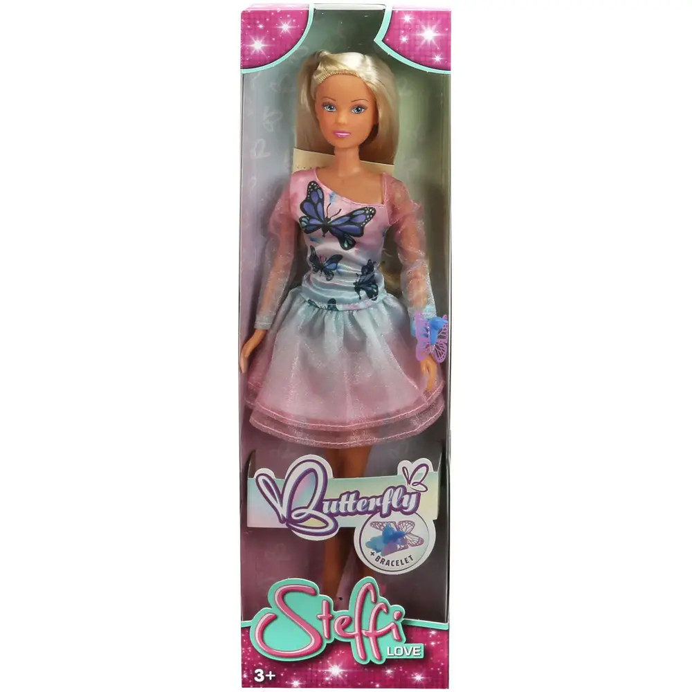 Engedd szabadjára a fantáziát ezzel az elbűvölő Steffi LOVE pillangós játékbabával! Steffi most a tavaszi frissességet hozza el a gyerekszobába, egy gyönyörű, hosszú ujjú, pillangómintás rózsaszín és kék ruhában, amelyet kék pillangós díszítések tesznek még varázslatosabbá.