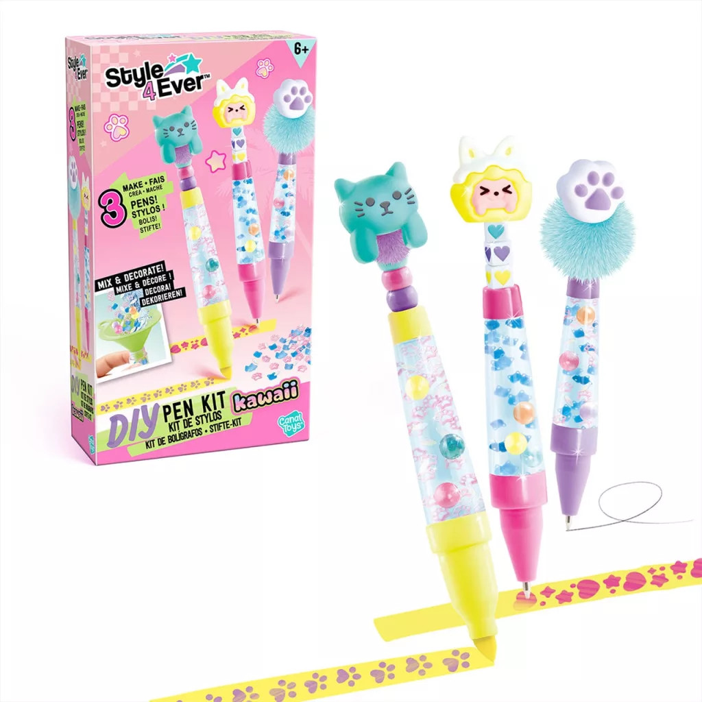 A Style 4 Ever DIY tollkészítő készlet egy imádnivaló kreatív szett, amellyel a gyerekek megalkothatják, díszíthetik és betölthetik saját írószereiket. Csak töltsd meg a tollakat vízzel, add hozzá a színes gyöngyöket, dekorációkat és toppereket – és máris kész az egyedi, kawaii vagy épp finomságokat idéző dizájn!