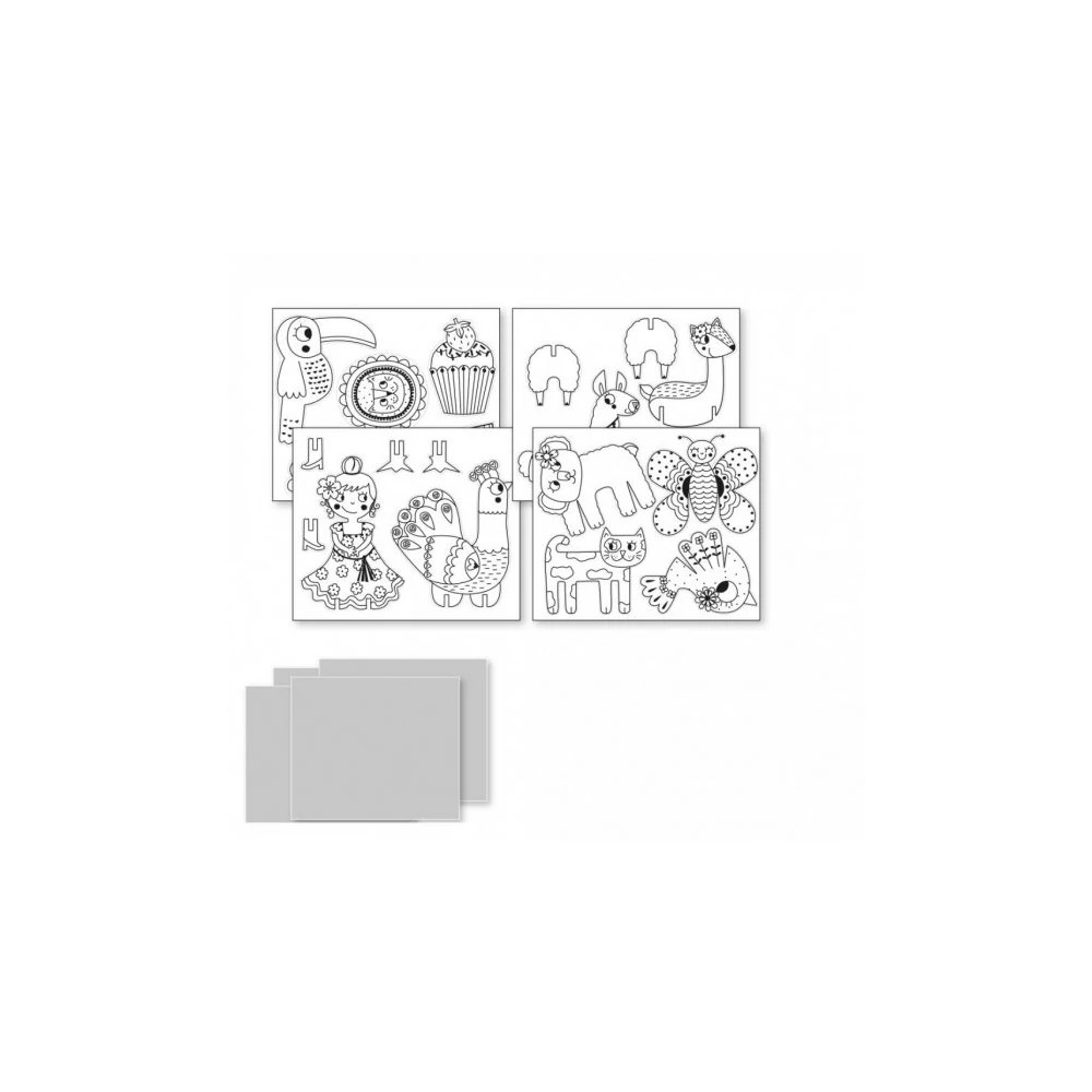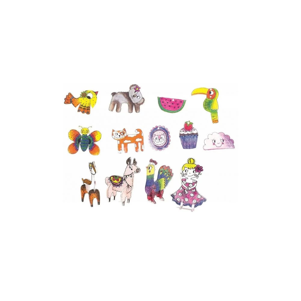 A készlet 12 db különböző nyomtatott figurát, útmutatót tartalmaz.