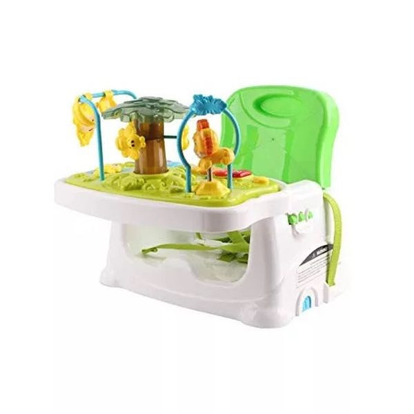 Biztonságban szeretnéd tudni babádat főzés vagy étkezés közben? A székmagasító és etető-játszószék használatával lekötheted gyermeked figyelmét a játéktálca zenélő, világítő esőerdőt ábrázoló, különféle állatos játékainak a segítségével. 3 az 1-ben: interaktív játéktér, etetószék és ülésmagasító. A játéktálcát egy mozdulattal kicerélheted etetőtálcára, így már meg is etetheted a picúrt. A kényelmes biztonsági hevederek lehetővé teszik, hogy az ülések könnyen illeszkedjenek egy konyhaszékhez, étkezés után könnyen letörölhető.