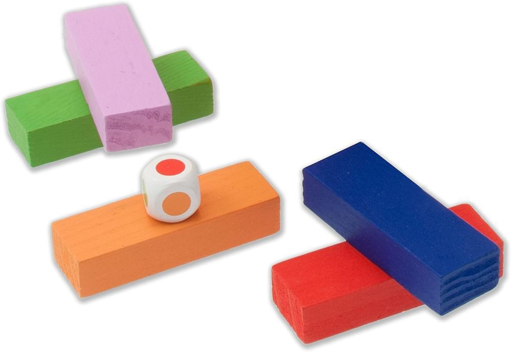 Színes fa Jenga dobókockával - toronyépítő társasjáték