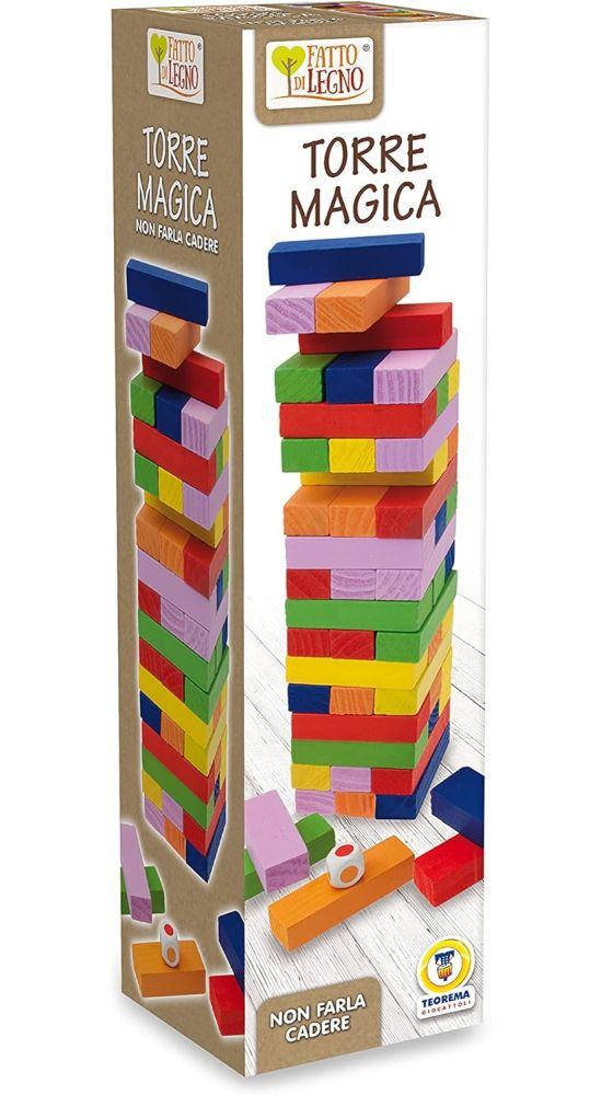 Kinél fog ledőlni a hasábokból álló színes torony? A jenga toronyépítő társasjáték piros, zöld, kék és más vidám színekből álló társasjáték, ami az ügyességen alapul. Építsétek fel a tornyot az építőelemekből, és utána egyesével kezdjétek őket kihúzni. Arra figyeljetek, hogy a torony egyensúlyban maradjon, mert akinél ledől, elveszíti a játékot. A jenga társasjátékot az nyeri, aki a legtöbb hasábot tudja begyűjteni anélkül, hogy a torony összedőlne. A csomagolásban még egy dobókockát is találsz aminek minden oldalán egy szín található. Ha nehezíteni szeretnéd a játékot, akkor használjátok a kockát és ha rajtad a sor a jenga húzásban dobj előtte és csak olyan színű hasábot húzhatsz ki amilyen színt dobtál.
