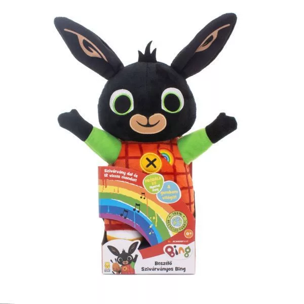 Bing nyuszi, most egy igazán különleges élményt kínál neked! Bing, a vidám és cseppet sem átlagos nyuszi, még több örömet hoz az életedbe a szivárványos beszélő változatával.