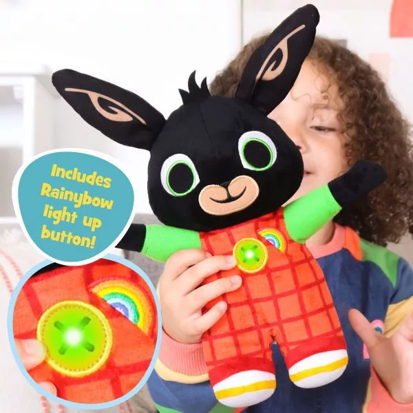 Csak nyomd meg Bing világító gombját és máris felcsenül a Bing meséből jól ismert szivárvány dal. Sőt, kedvenc mesehősöd még 12 különböző kifejezéssel is megörvendeztet téged, amiket a mesében már hallhattál.