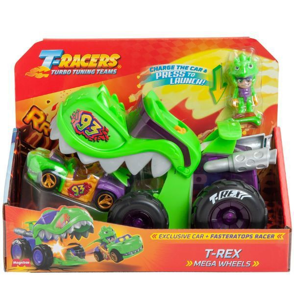 A sárkány alakú T-Racers járgányba könnyedén belefér a versenyző kocsija. Szállítójárműként is használható, de a cápajárgány ki is tudja lőni a kisautót, hogy egy igazi robbanással induljon a verseny.