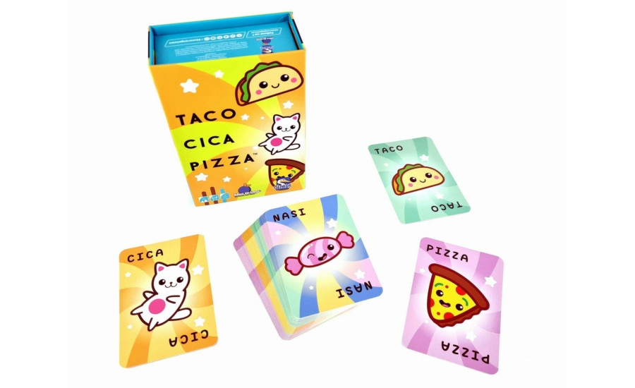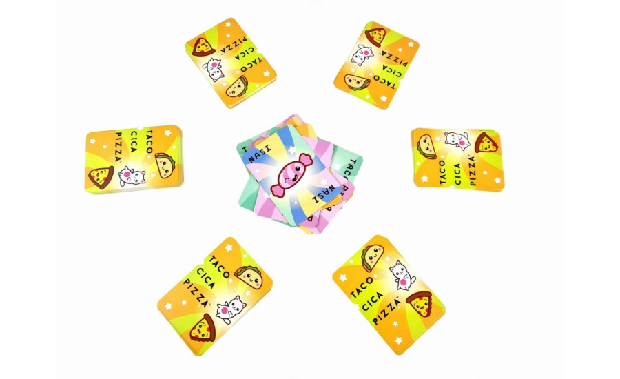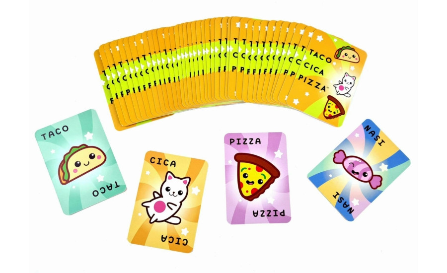 A Taco Cica Pizza egy pörgős és vicces társasjáték, ami elsősorban gyerekeknek készült – ez a nagy sikerű partijáték könnyített változata. A játékosok feladata, hogy megtippeljék, milyen kártyájuk következik – de ha nasit látnak, le kell csapniuk rá!