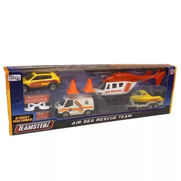 Ezzel a mentőegység készlettel biztosan tudsz a bajbajutottakon segíteni! Ha nehéz megközelíteni a helyszínt, akkor indulj helikopterrel, ha vízen történt a baj, akkor pattanj fel a motorcsónakra, szárazföldön pedig a mentőautó és a terepjáró lesz segítségedre.