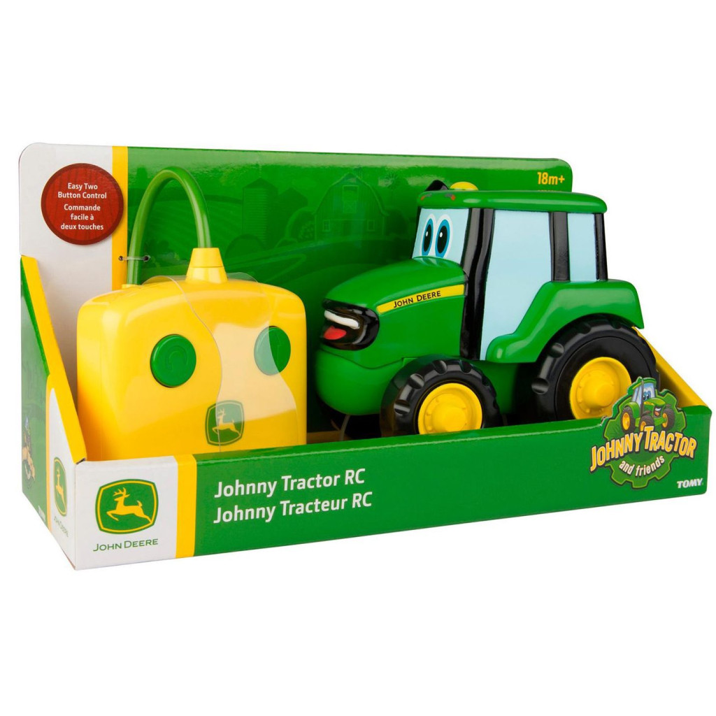 A TOMY: Távirányítós Johnny traktor olyan, mint egy igazi John Deere traktor, amit a való életben mocsári és egyéb nehéz terepen végzett munkákhoz gyártottak dupla kerékkel.