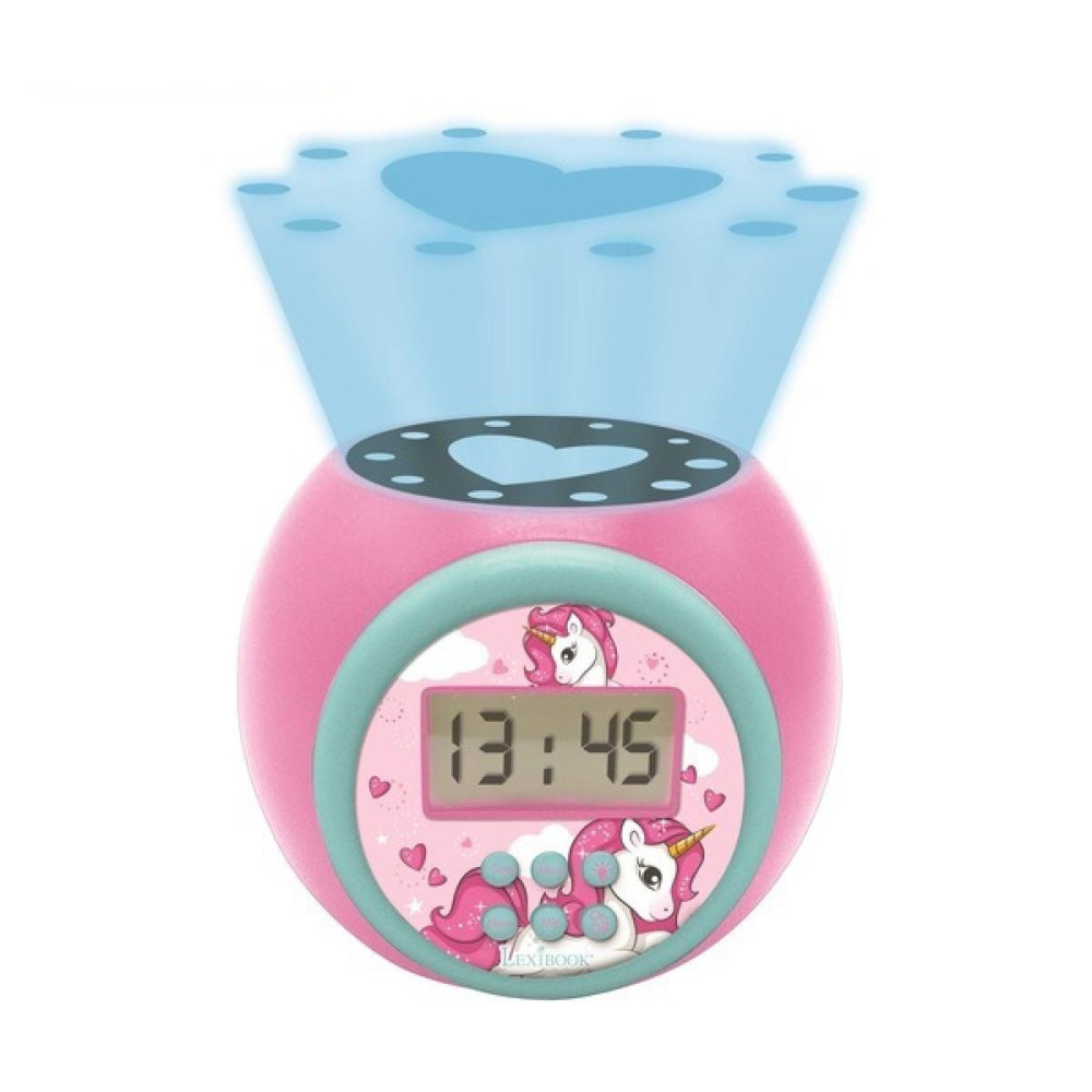 Unikornis projektoros ébresztő óra kék fénnyel világít a plafonra így akár éjszakai fénynek is tökéletes választás. LCD kijelzőjén könnyen leolvasható az idő, ébresztőként is funkcionál, szundival. A nagy méretű gomboknak köszönhetően biztonságosan és könnyen kezelhető.