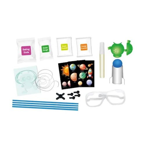 A készlet tökéletes az ok-okozati összefüggés felfedezésére, valamint a csillagászat és a kémia elsődleges fogalmainak megismerésére. A készlet segítségével 5 kísérletet végezhetsz el, melyek végén egy saját Naprendszert építhetsz meg, amely a szobád éke lehet.
