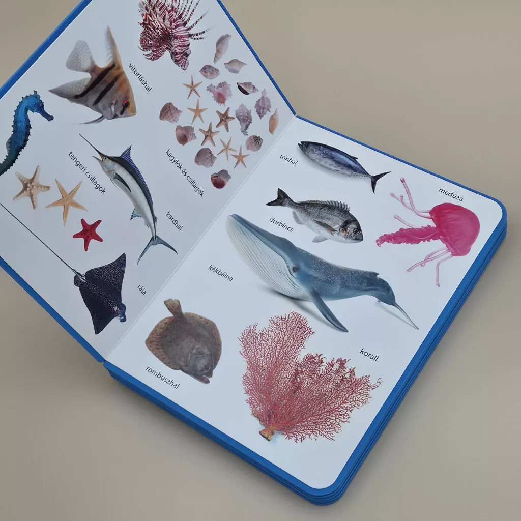 „Ismerd meg a halak, tengeri emlősök és más vízi állatok sokféleségét. Ez a képes szótár a legkisebbeket is elvarázsolja...”