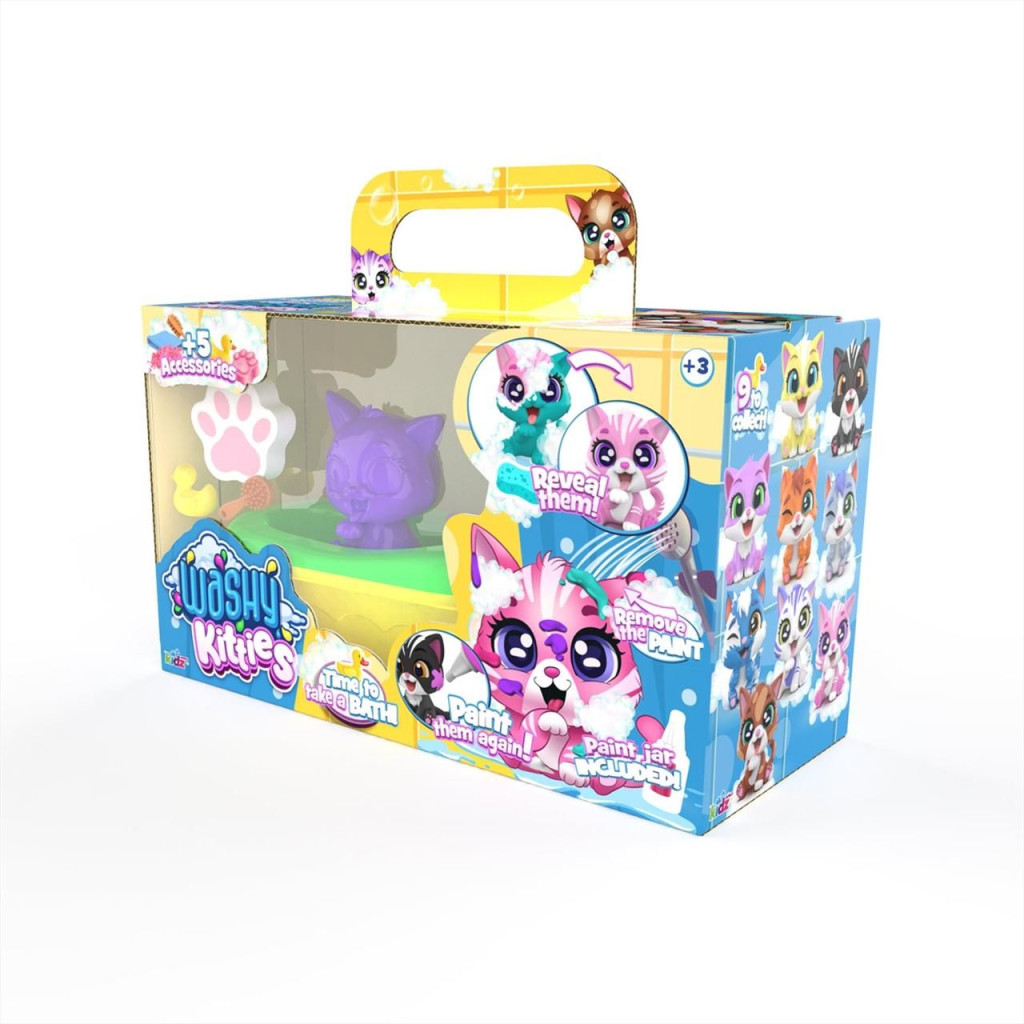 Ez a Washy Friends Color Reveal Pancsoló cicus imád játszani, és "sáros" bundával érkezik hozzád. Légy jó gazdija, és fürdesd meg őt, hogy szép szobatiszta legyen. A csomag egy cica figurát, egy kádat, egy tisztító kefét, egy mancstisztító szivacsot, egy törölközőt és egy gumikacsát tartalmaz a játékos pancsoláshoz, valamint egy extra adag trutyit, hgy másnap újra kezdődhessen a játék. A cica bundája meglepetés.
