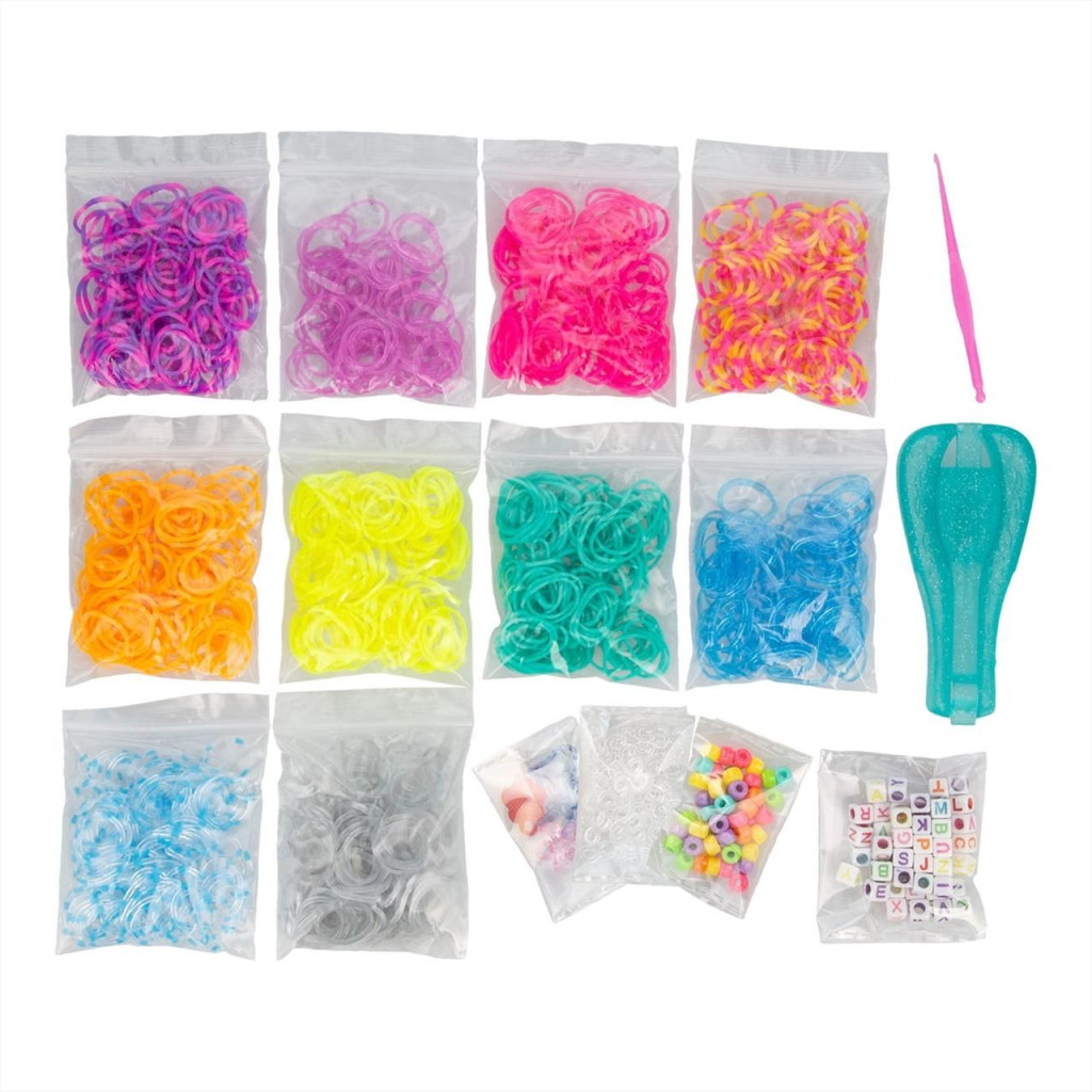 Ebben az iLY Csináld magad karkötő-készítő szettben mintegy 1000 gumikarikát találsz, melyekből színes, vidám, igazi csajszis karkötőket készíthetsz, ráadásul az 5 charmmal és mintegy 150 betűs vagy színes gyönggyel még különlegesebbé teheted az ékszereket. A készlet tartalmával akár 50 karkötőt is elkészíthetsz, így legjobb barátnőidet, testvéreidet is megajándékozhatsz egyszemélyes meglepetéssel.
